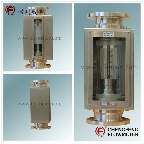 FA24 series glass tube flowmeter is designed and product by international advanced technology and equipment,the quality and performance are advanced in the world,featured with high accuracy,special design,the adjustable flange connection easy for installation.Change taper tube and float easily without move the flowmeter out of pipeline.