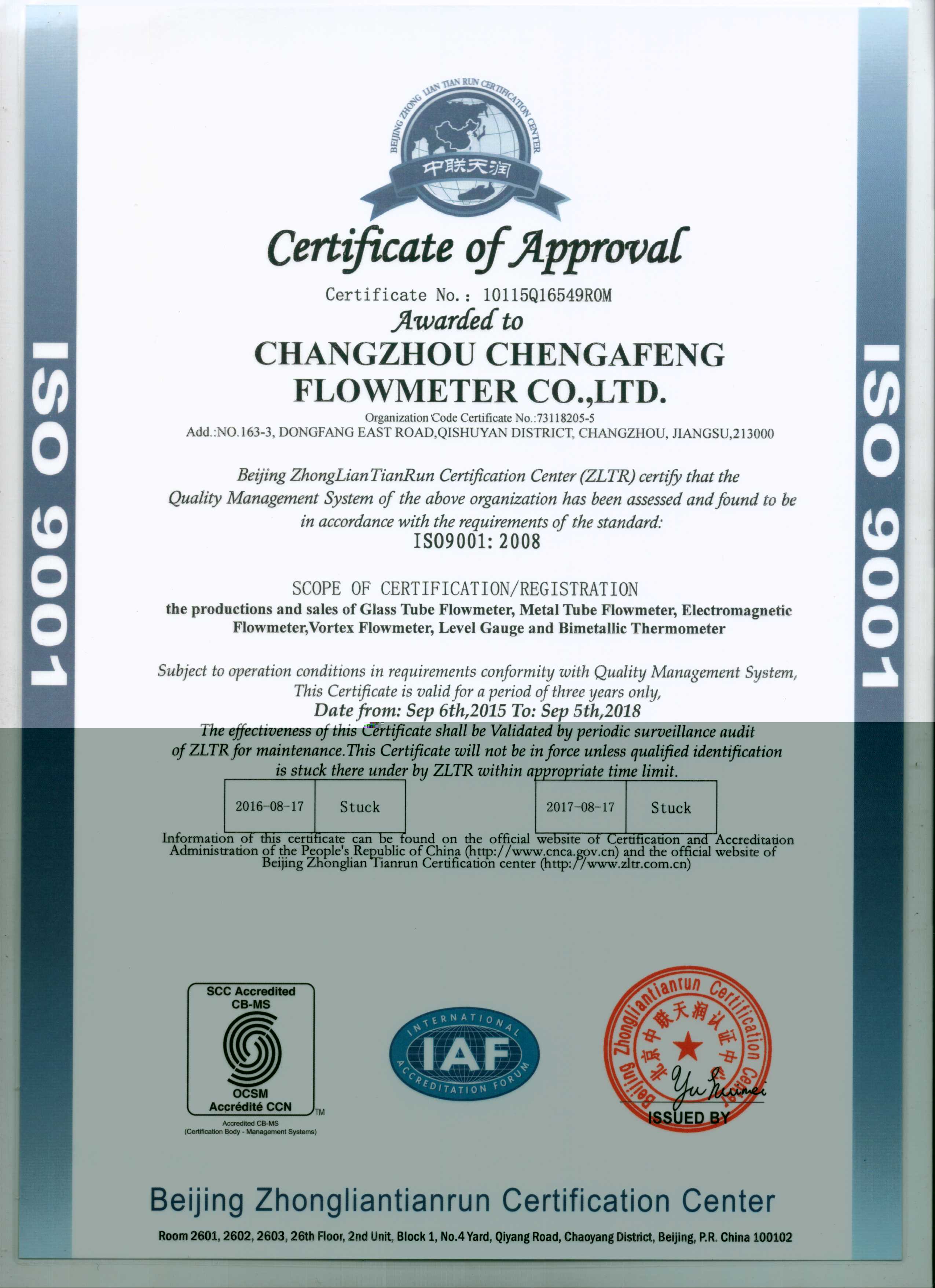 Changzhou Chengfeng Flowmeter Co.,Ltd for 30 years, has been in the study and progress, learning advanced foreign instrumentation equipment and technology, the introduction of advanced technology, and then based on the research and development of new technology, combined with the requirements of customers innovative products that meet customer needs, meet the requirements of customers, the pursuit of perfect quality, technical breakthroughs.